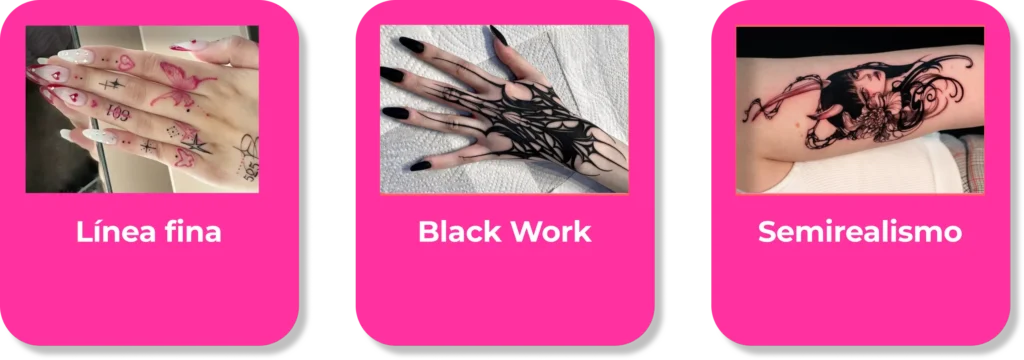 Cada estilo representa una forma diferente de ver y sentir el arte —ya sea por la fuerza del color, la pureza de las líneas o la intensidad del negro—, permitiendo que cada persona encuentre el diseño que más se identifique con su historia.
